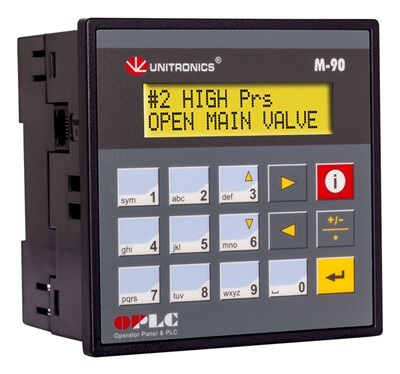 คุณสมบัติ Programmable Logic Control (PLC) ยี่ห้อ UNITRONICSHMI• จอแสดงผลชนิดตัวอักษร 2 บรรทัด• ออกแบบหน้าจอได้ 60 หน้า• รองรับ Font ได้ 15 ภาษา• IP65/NEMA4X